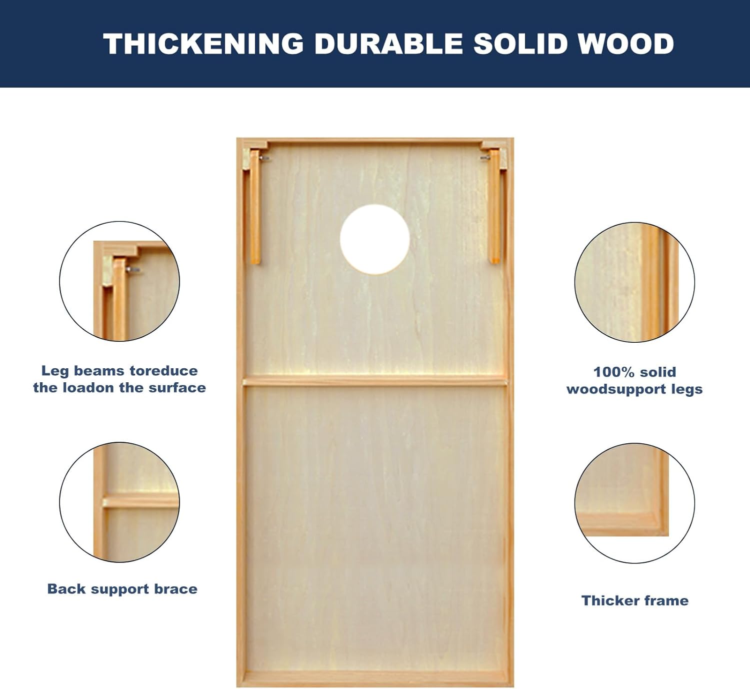 - 【100% Solid Wood Construction 】 Crafted from high-quality pine wood, this cornhole outdoor game set ensures durability and longevity. The 100% solid wood construction guarantees a sturdy playing surface,The galvanized bolts secure the feet, ensuring stability during gameplay, while also making the cornhole boards lighter and more portable than other options in the market.