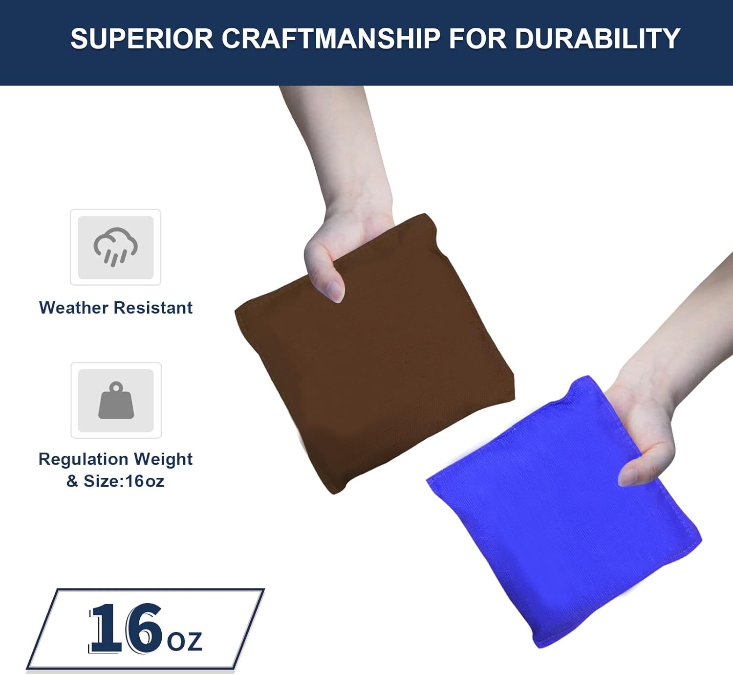 - 【Regulation Size 】The All-Weather Cornhole Game Set comes with two regulation size (4x2)/(3x2) feet cornhole boards and 8 bean bags. The cornhole bean bags are made from high-quality canvas with double needle stitching, offering long-lasting performance and resilience.The included zippered tote bag provides convenience and protection, ensuring your cornhole set remains clean and ready for use.